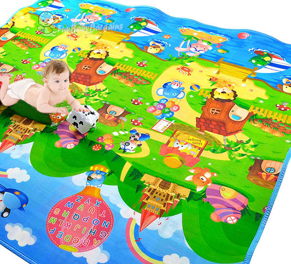 2m Double Sided Large Alphabet & Animal Farm Baby Kids Play Mat