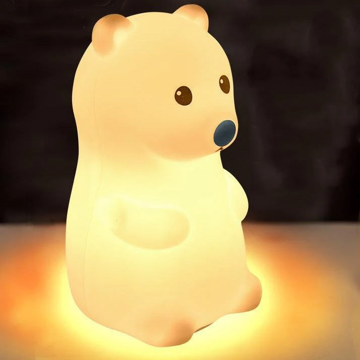 Adorable Silicone Bear Night Light USB Rechargeable Multicoluor Kids Bedroom Lamp
