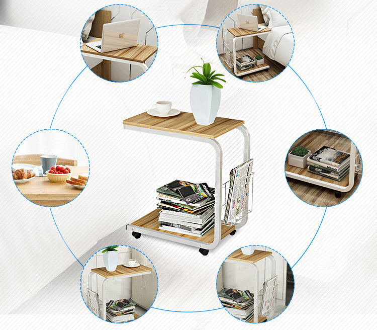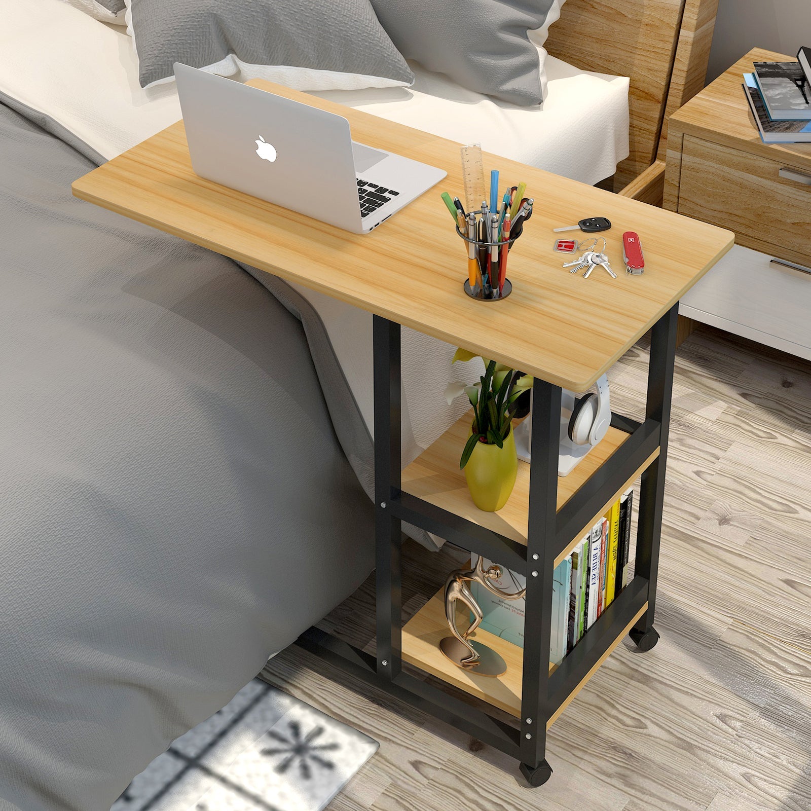 A compact bedside table with storage works well in small rooms. Choose a slim design with drawers or open shelves to keep things organised without taking up too much floor space.