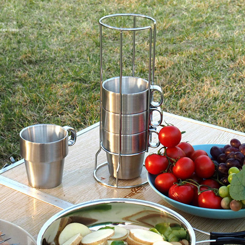 4PC Stainless Steel Camping Cups Tea/Coffee Mugs Set with Stand