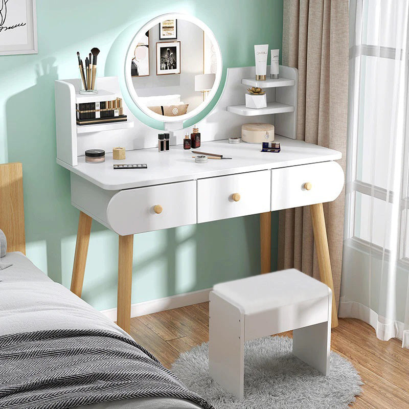 LED Luminous Mirror White Makeup Vanity Dressing Table with Storage Drawers