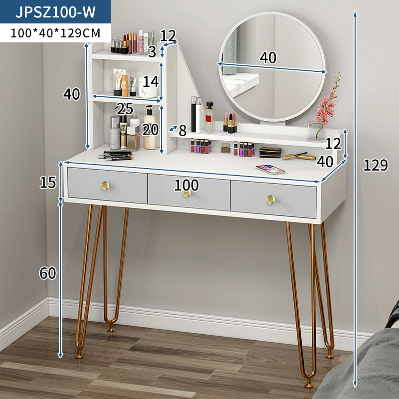Luxe Dresser Makeup Vanity Dressing Table with Round Mirror Drawer White