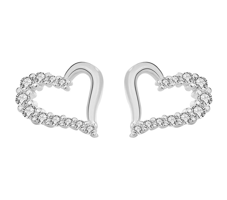 S925 Heart-Shaped Sterling Silver Earrings with CZ Diamonds