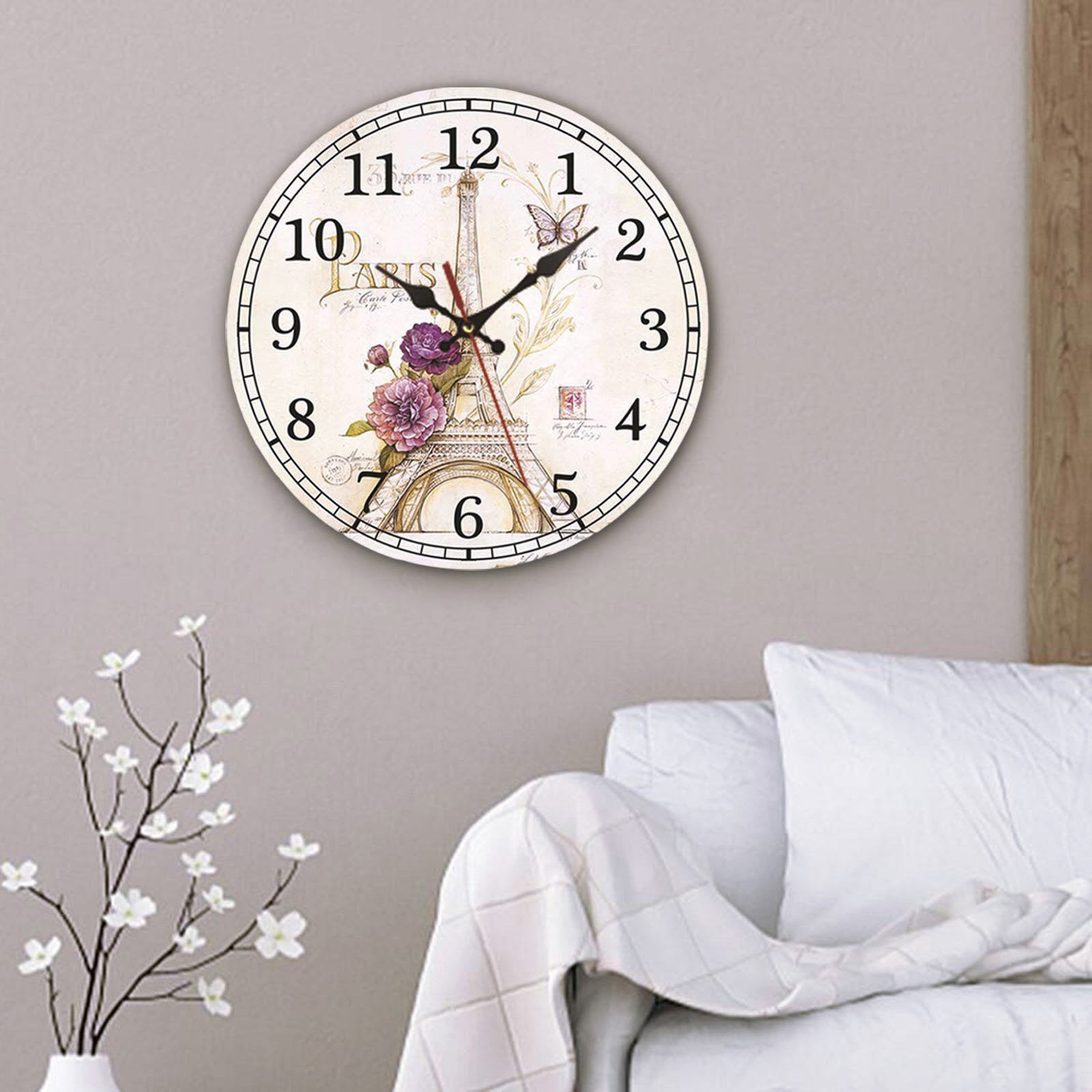 Wooden 30cm Vintage Paris Flower Eiffel Tower Home Decor Wall Clock