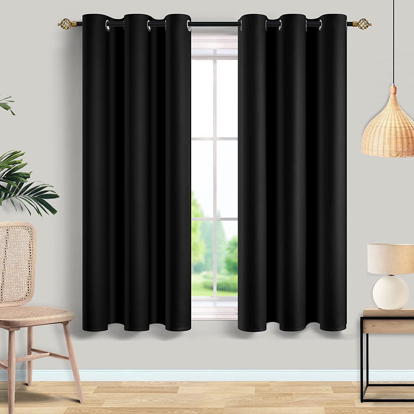 2 X Blackout 3 Layers Eyelet Curtain Drapes - Black