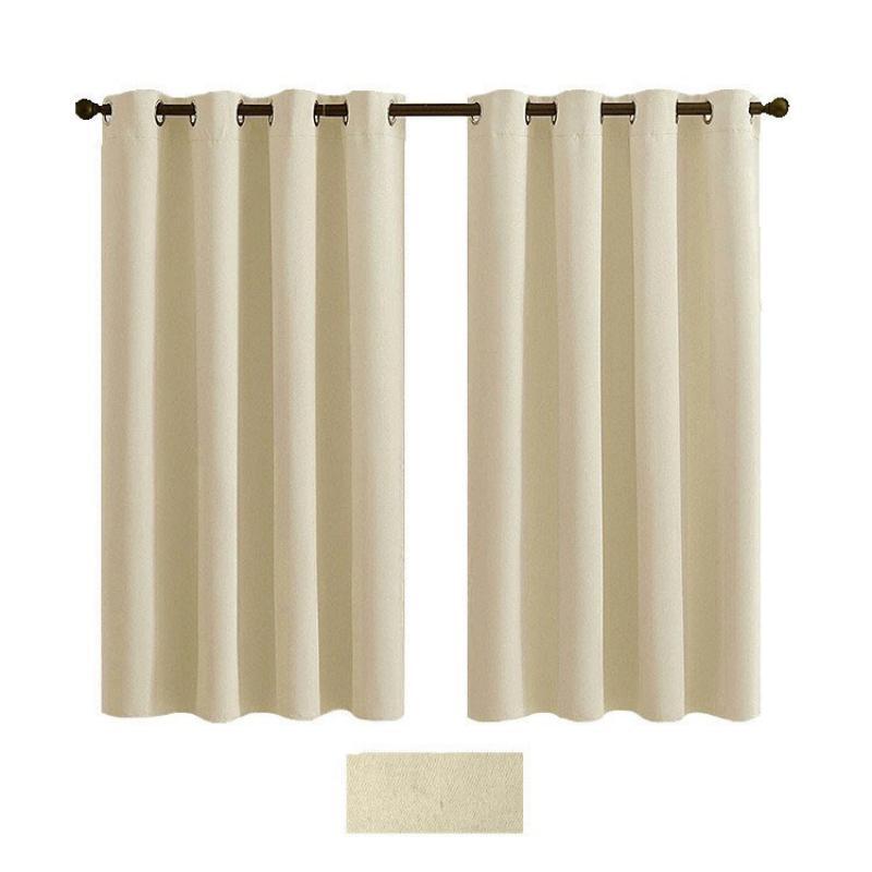 2 X Blackout 3 Layers Eyelet Curtain Drapes - Beige