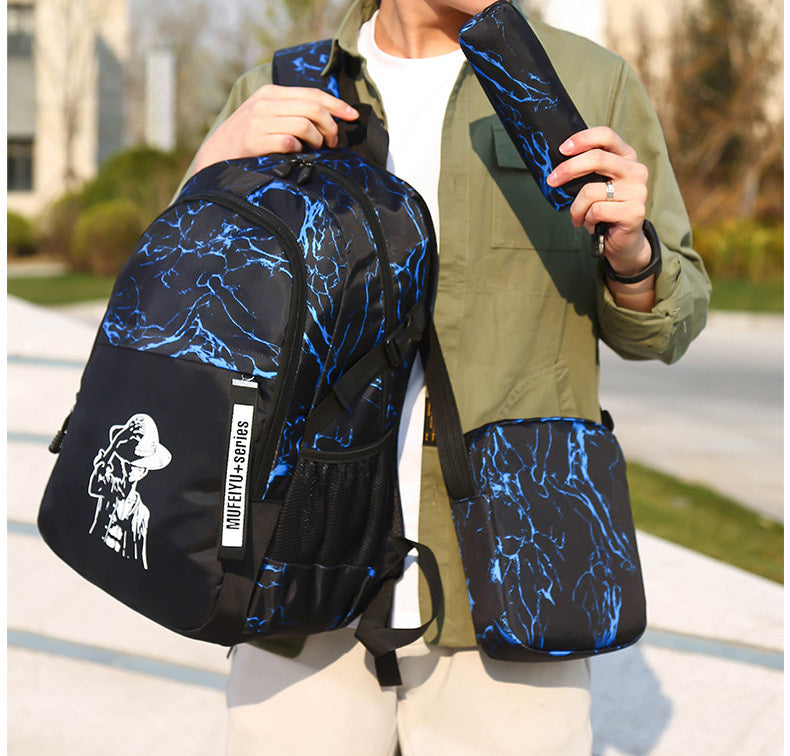 3PC Set Anime Straw Hat Backpack Shoulder Bag, Crossbody School Bag & Penholder