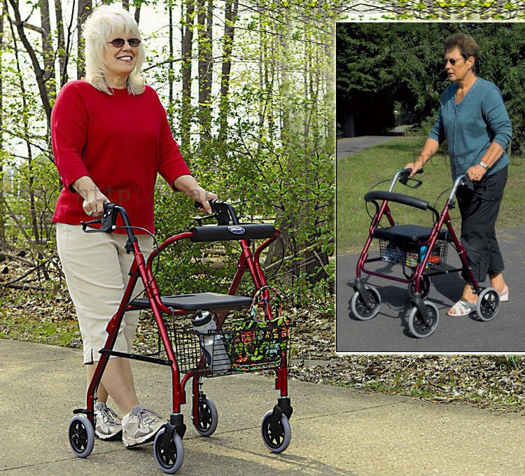 6-Wheel Senior's Foldable Rollator Mobility Walker Walking Frame with Seat