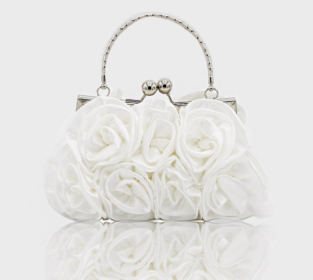 Deluxe Rose Ladies Event Evening Purse Bag (White)