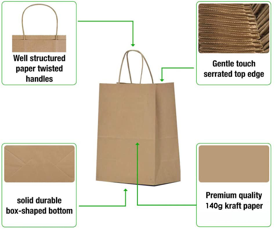 100 X Kraft Paper Bags Bulk Pack Gift Shopping Brown Retail Bag with Handles