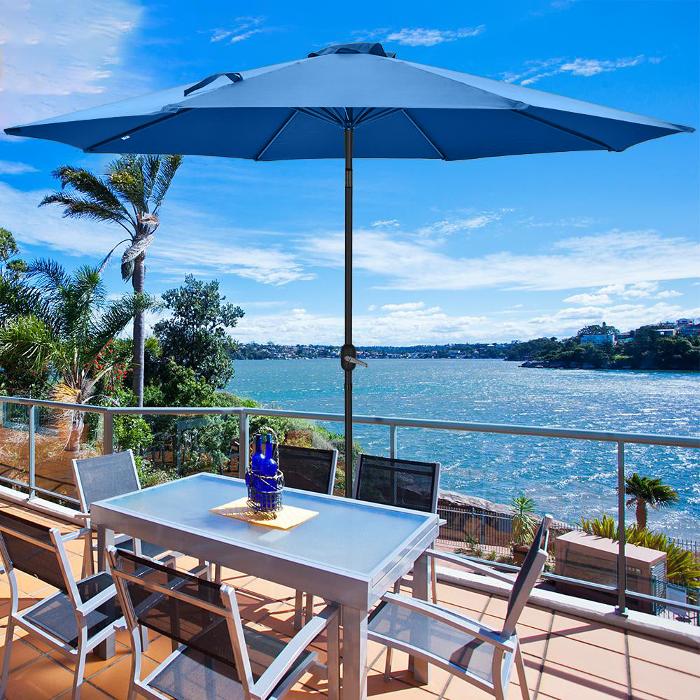 Aluminium frames are light and resist rust. Powder-coated steel offers strength with a durable finish. Quality ribs, locking pins and easy crank handles make opening and closing simple. Some cantilever models include 360 degree rotation for quick repositioning.