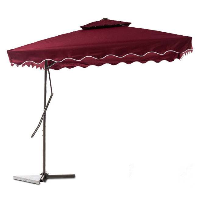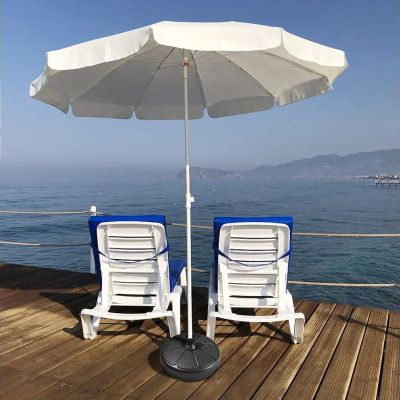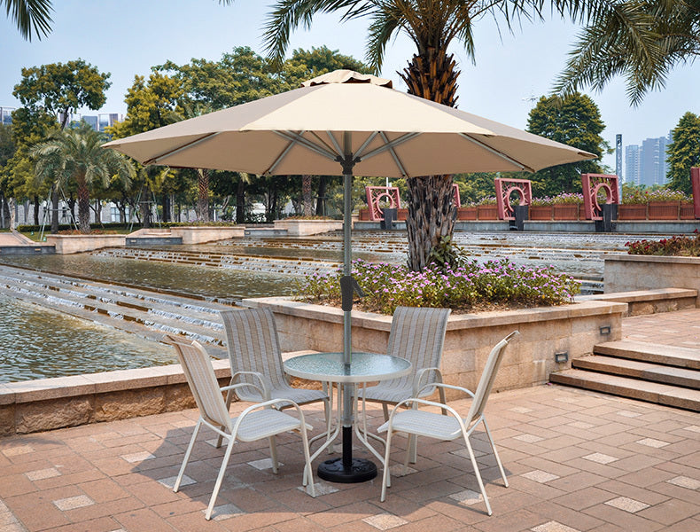 Match the base to the canopy size and pole type. Cantilever styles usually need a cross base with pavers or a fillable base with water or sand. Centre pole umbrellas use weighted bases sized to the pole diameter. Place on a level, stable surface and secure before use.