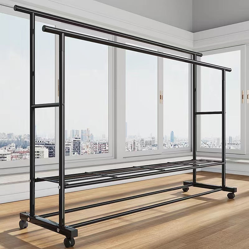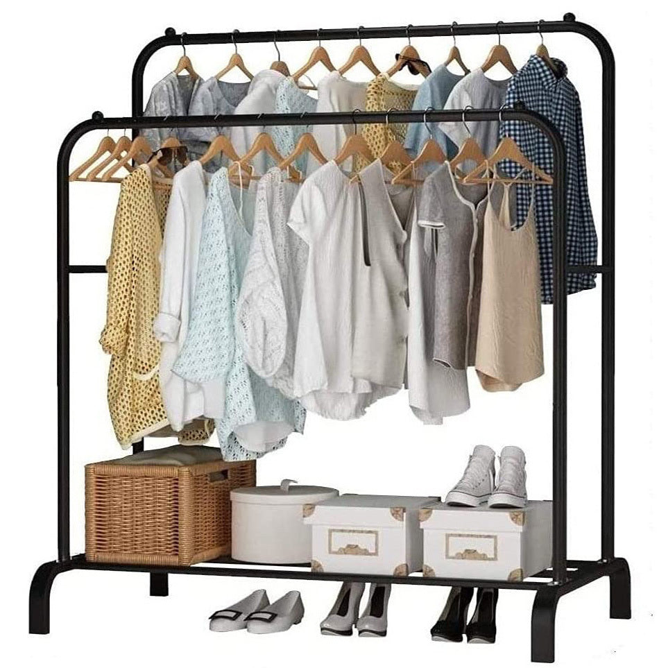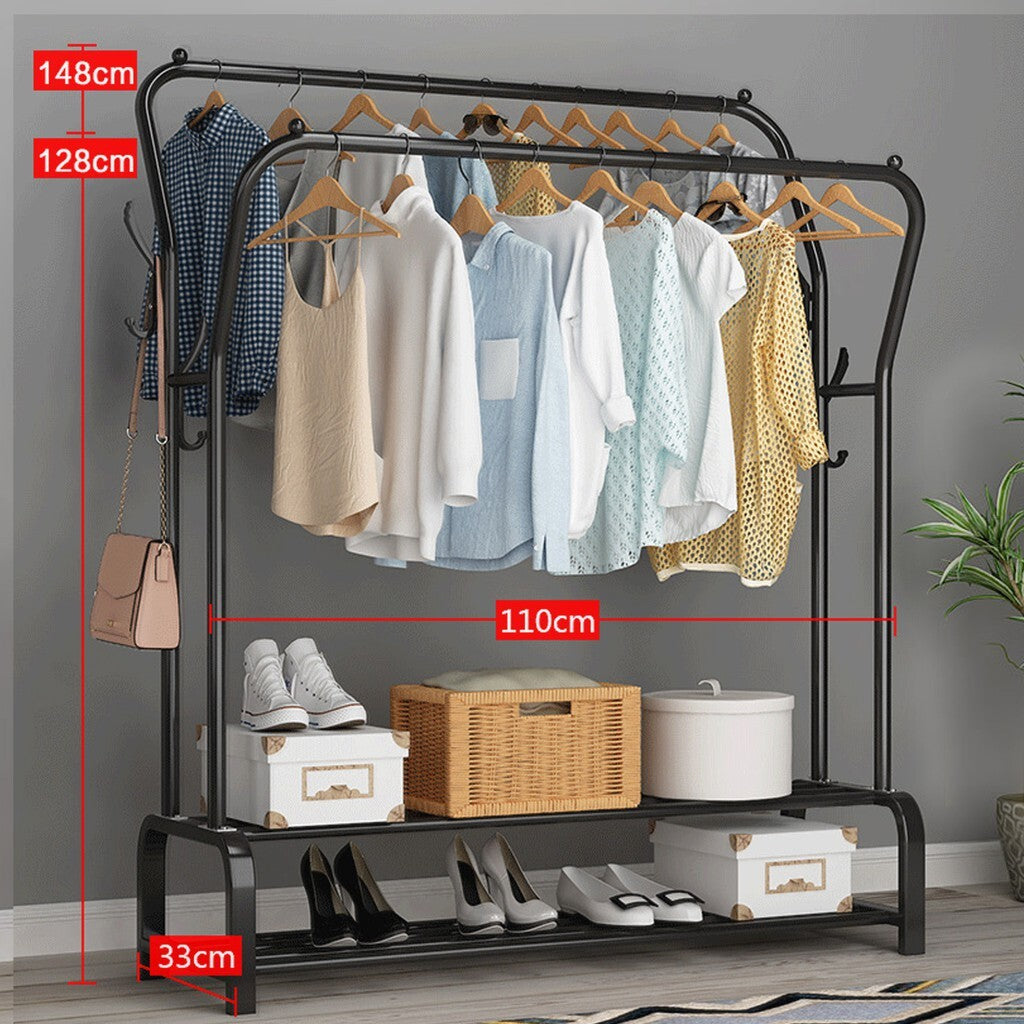 Large Double 2-Tier Coat Hanging Stand Wardrobe Clothes Hanger Rack (Black)