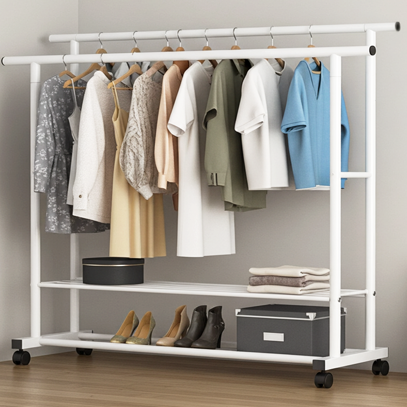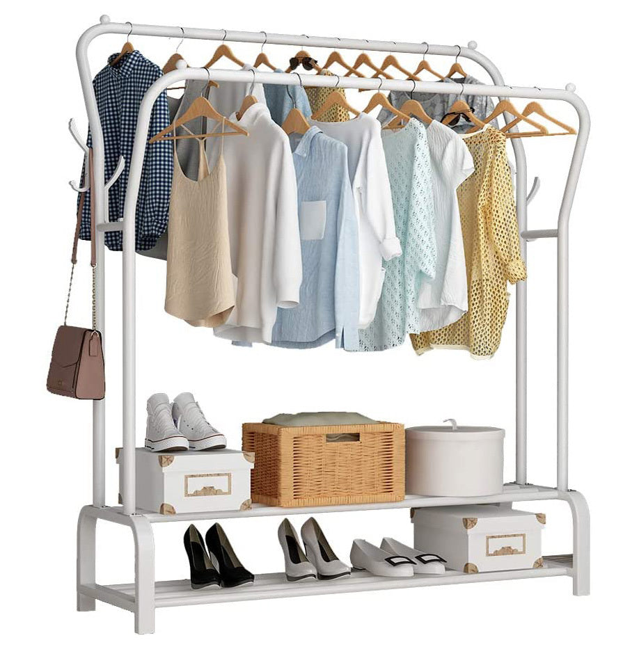 Large Double 2-Tier Coat Hanging Stand Wardrobe Clothes Hanger Rack (White)