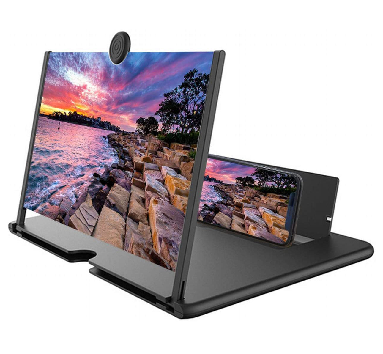 Using the ultra-high-definition screen amplifier, you can create a portable mini home theatre anywhere! Avoid visual fatigue caused by a small screen. This fantastic screen amplifier offers an excellent and astonishing viewing experience with high-definition picture quality. Expand your smartphone screen 3 to 4 times to maintain a safe distance and protect your eyes. It does not require batteries and works with any smartphone. Perfect for watching movies, videos, and much more on your phone.