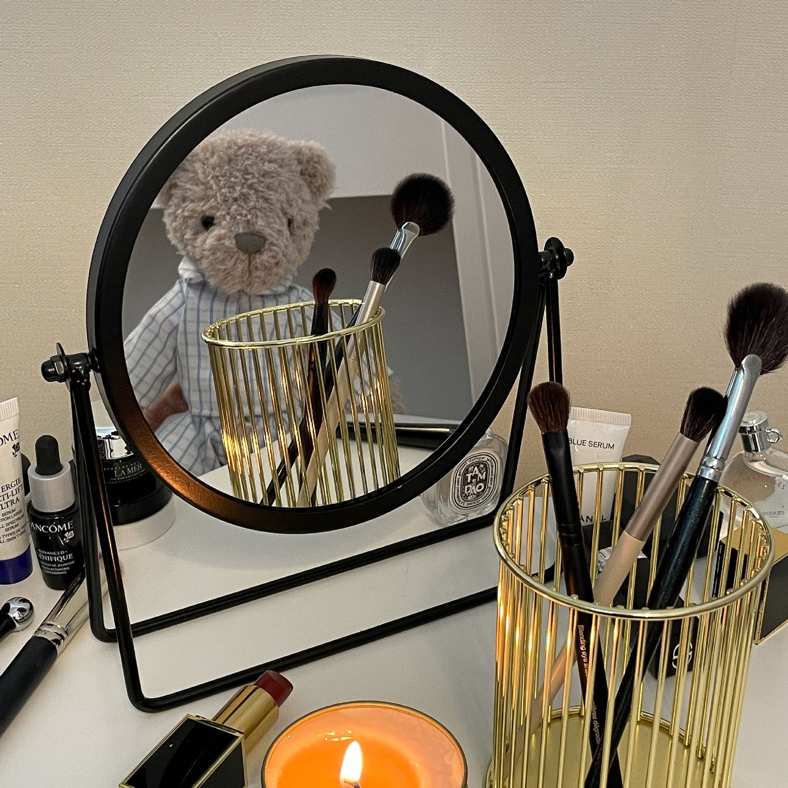 - Statement Design: A centrepiece that lends a touch of elegance to any vanity table. Available in matte gold and sleek black, it beautifully blends with any decor, enhancing the luxury feel.
