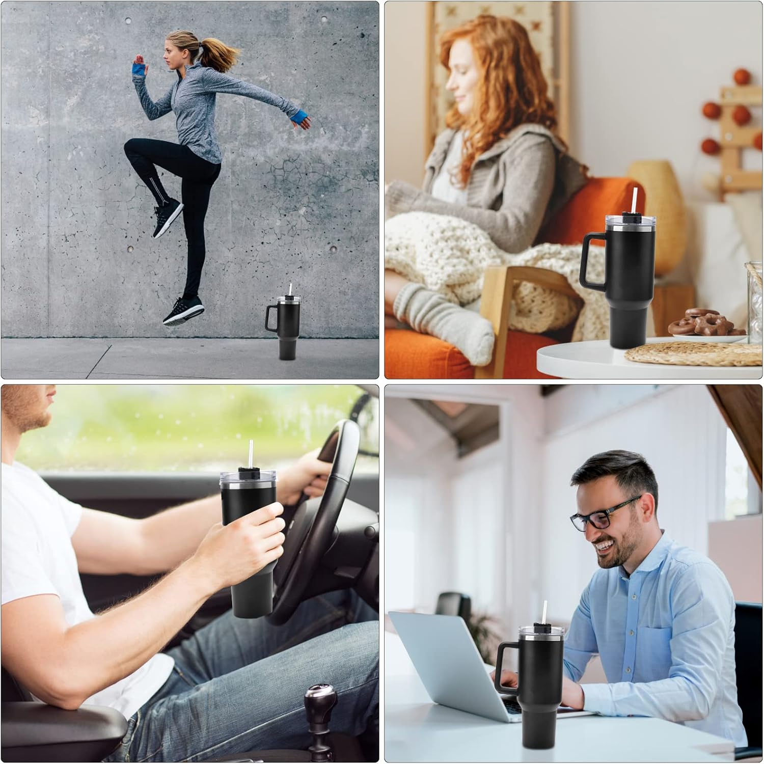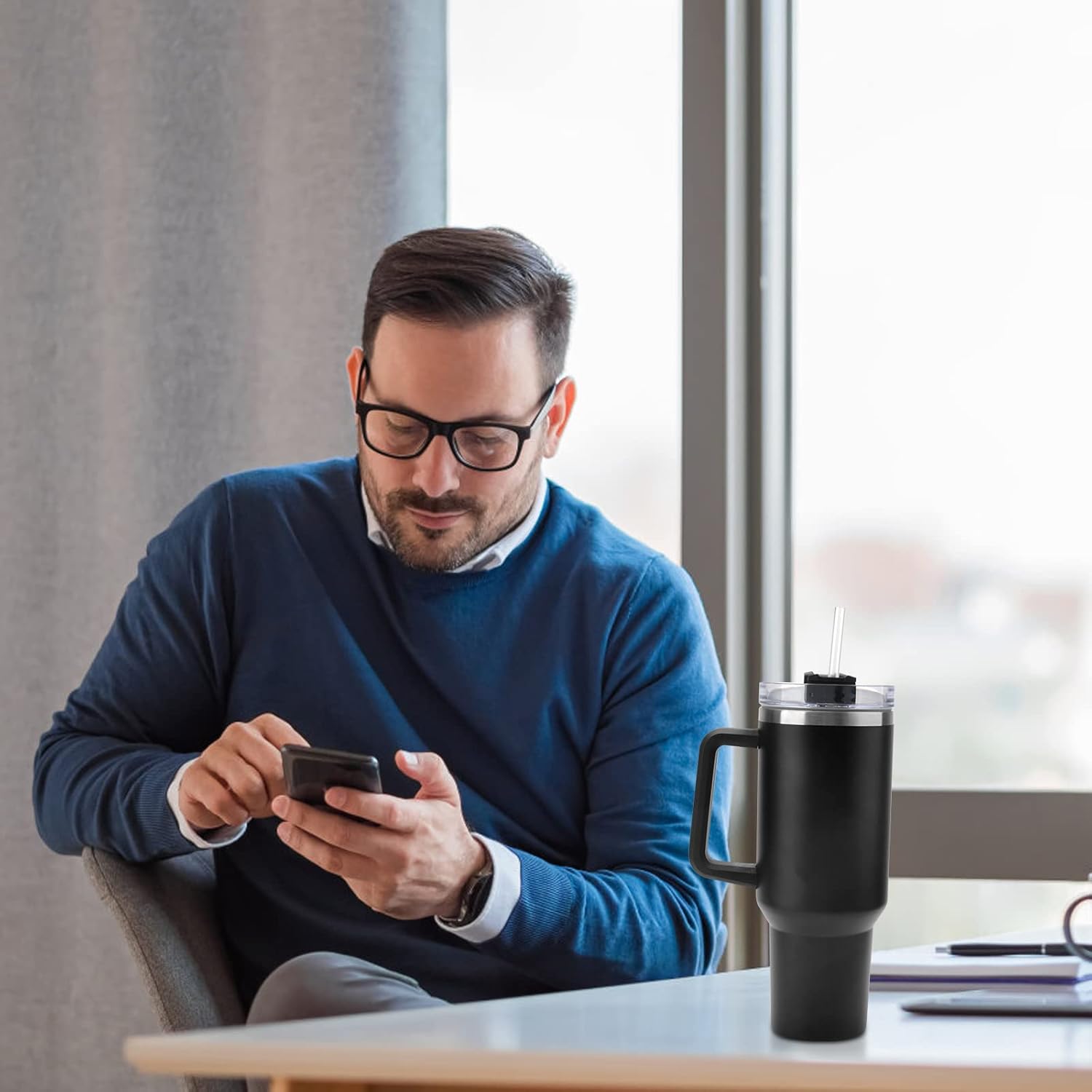 40oz Stainless Steel Insulated Tumbler with Handle Straw Travel Mug (Black)