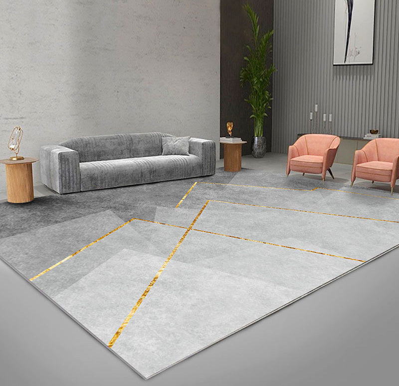Featuring a simplistic abstract geometric pattern with a touch of gold accent, this rug is perfect for adding style, comfort, and class to your home. It fits most furniture, making it an excellent choice for any space. Our elegant designer rug is anti-slip and easy to clean, making it perfect for family-friendly homes or high-traffic areas. Super cozy and delightful, this beautiful modern rug is a work of art designed for a luxurious feeling.