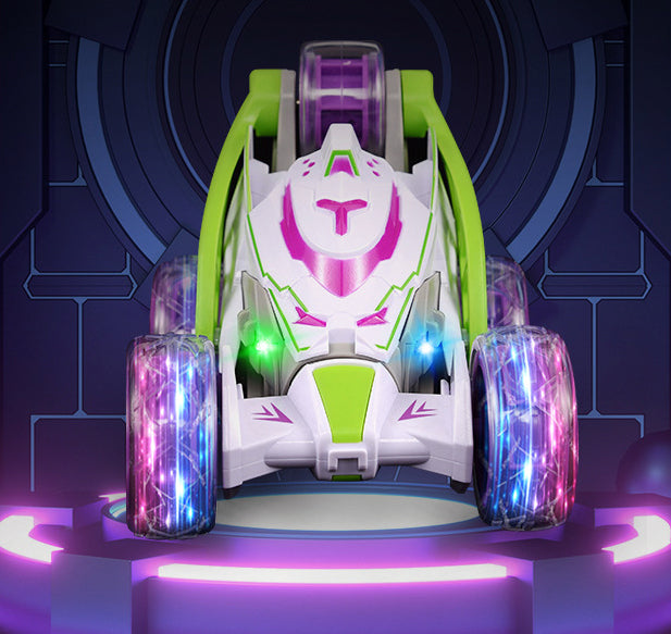 This mini stunt car is a visual spectacle designed to captivate, producing a vibrant display of colors that pulse in time with energetic music and dazzling lights, creating an immersive, multi-sensory experience.