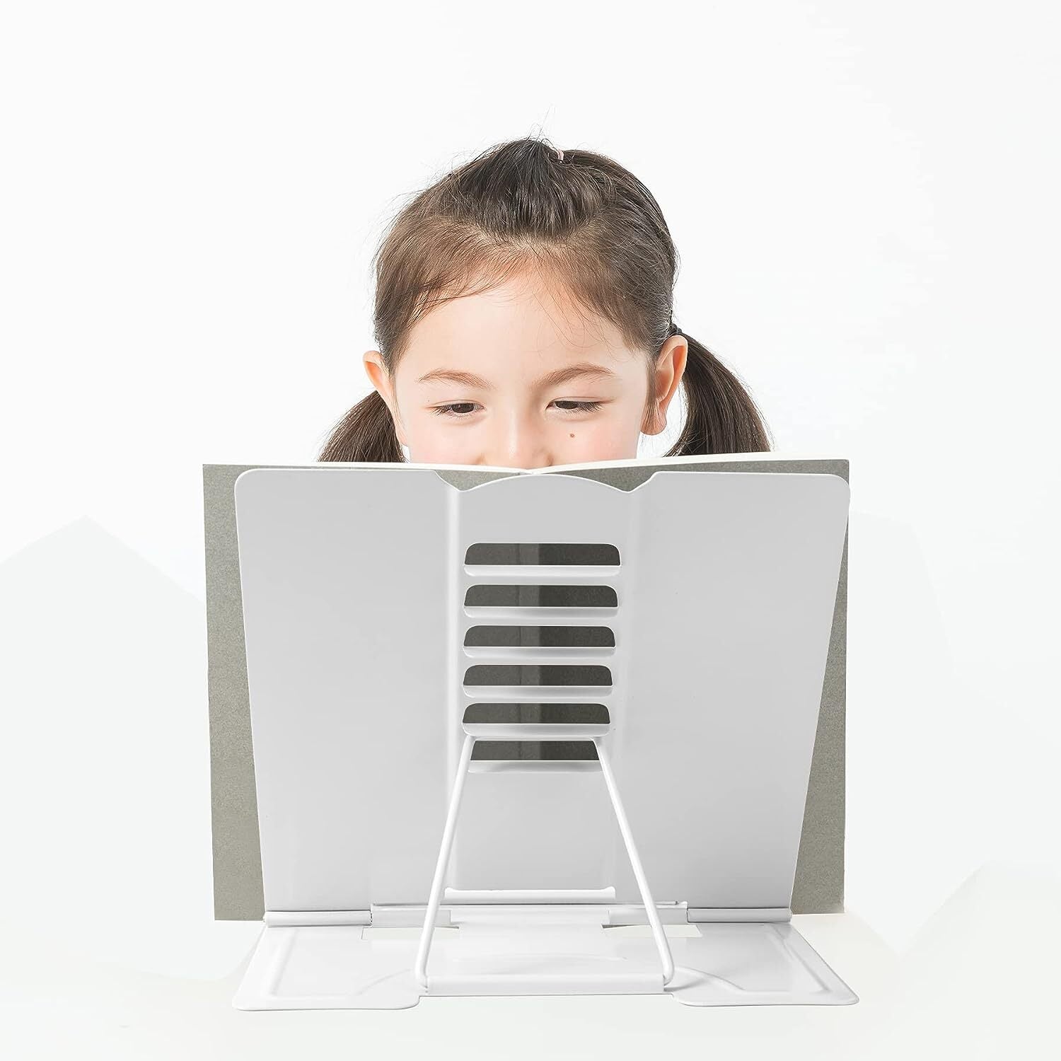 Adjustable Book Stand Portable Reading Rest Metal Holder (White)