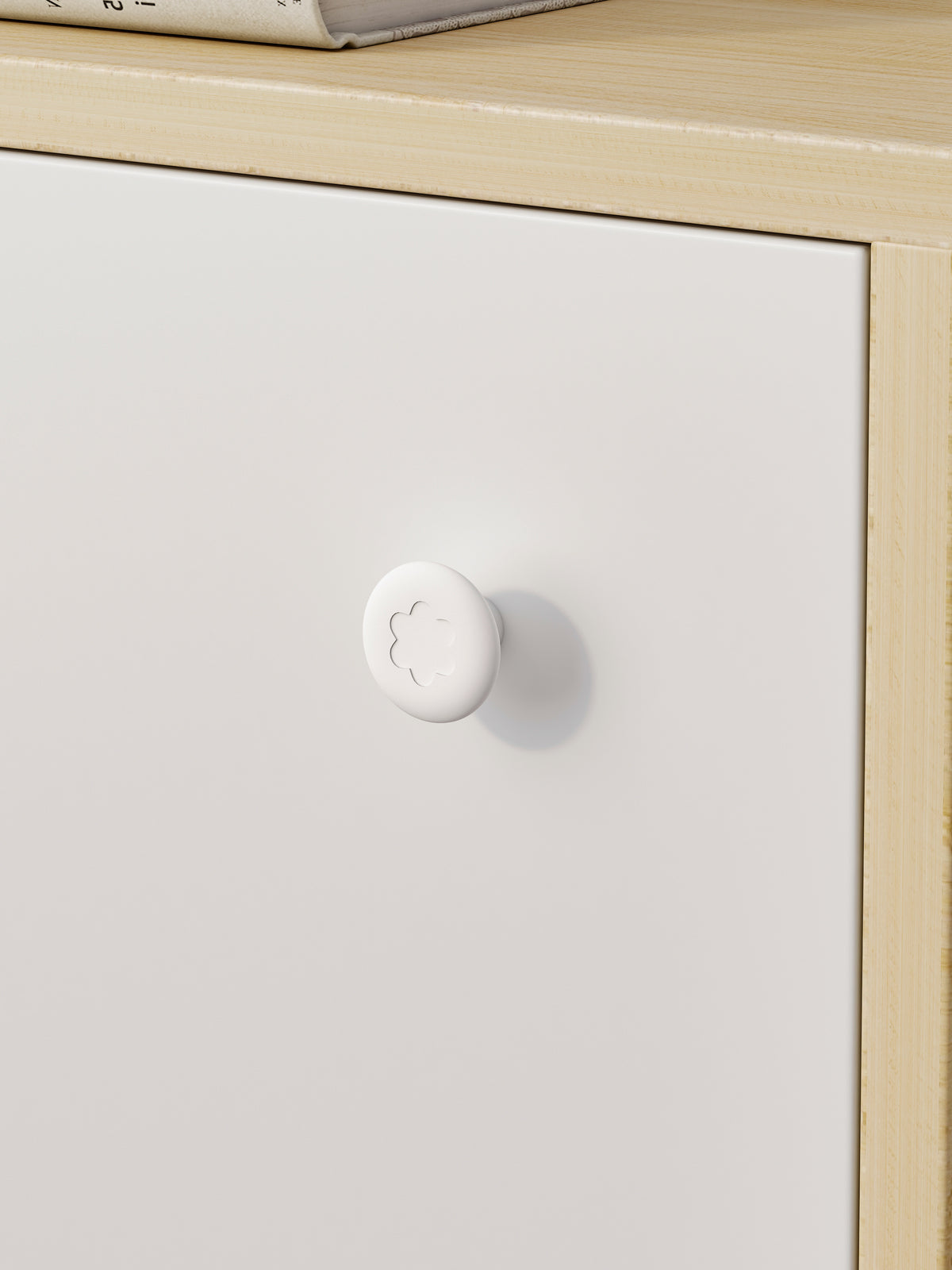 - Minimalist design with a delightful combination of warm natural wood and pristine white finish