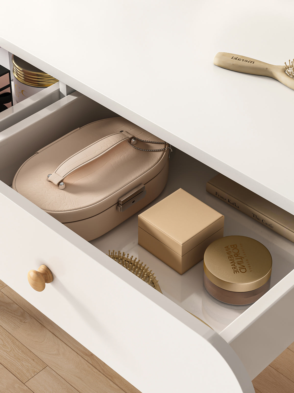 Effortless elegance, timeless style, and practical functionality – this vanity table set has it all. Make every day feel special with this must-have addition to your home!