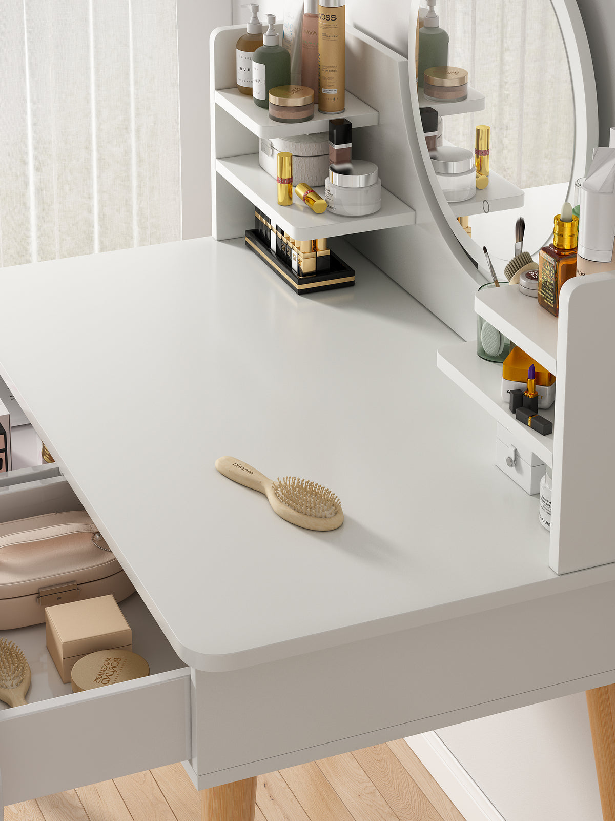 - Spacious tabletop for displaying beauty essentials and accessories.