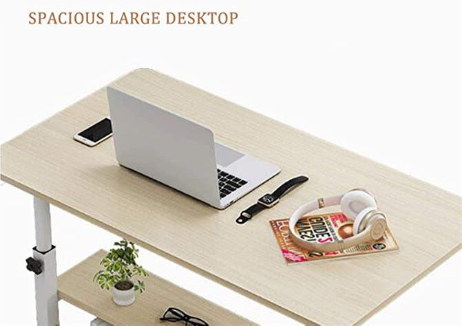 The 2-tier Large Sofa Bed Side Table Laptop Computer Desk features a sleek and modern design. This unique and elegant desk combines the sophistication of steel and the warmth of wood, stylish and modern yet simple. It includes spacious shelves for extra convenience and storage space, and the 4 wheels allow for easy portability.