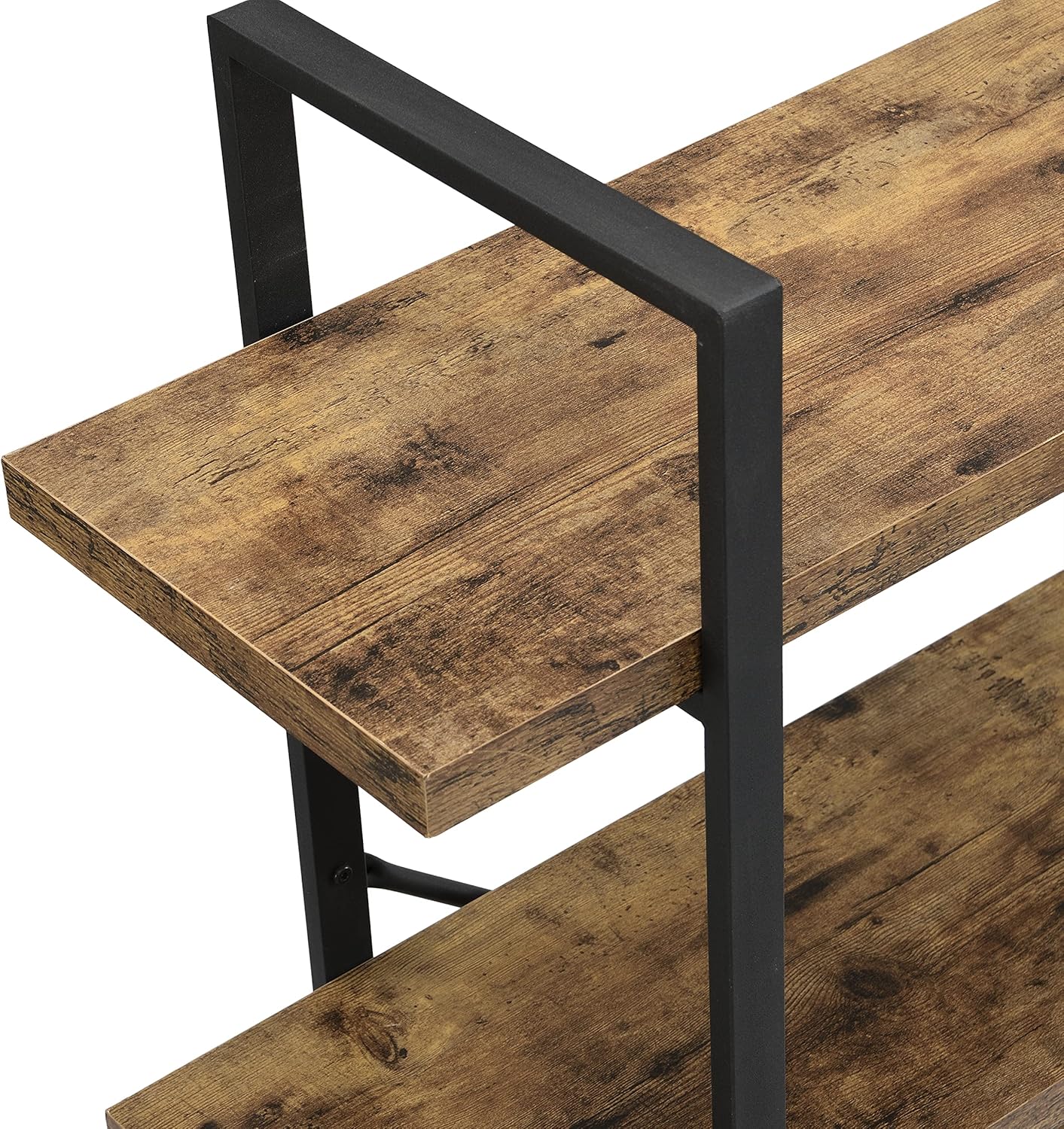 Eye-Catching Rustic Charm: Four spacious shelves with a rustic wood finish add authentic character and warmth to your interior.