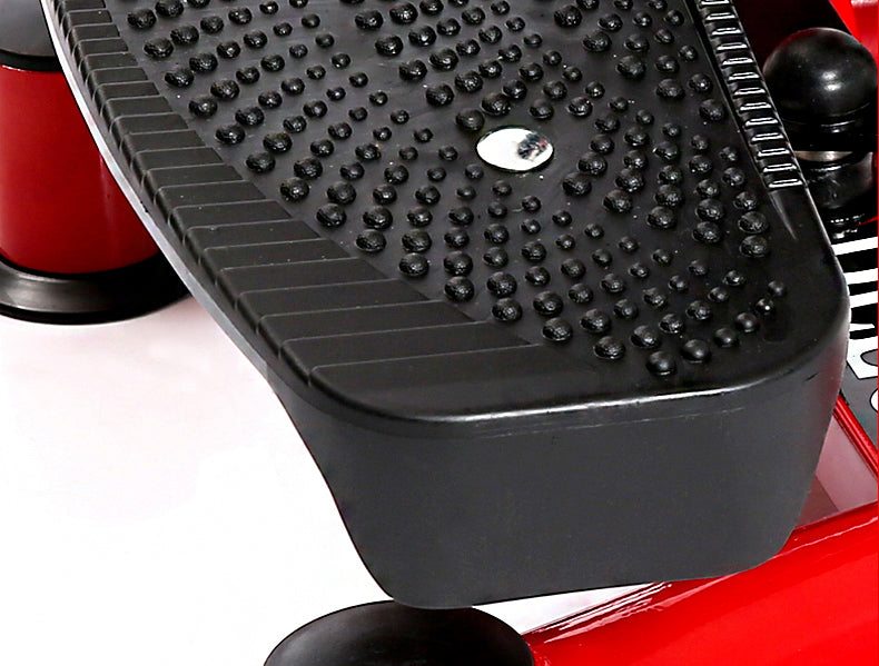 CLEARANCE SALE! Offering a full cardio workout and strengthening your muscles, the stepper takes the pressure off your joints and bones while providing a strong full-body workout for your legs and cardiovascular system. Get your workout routine started with this Premium Twist Stepper. It helps tone muscles and increases strength and endurance. With a premium gas lift and unique bonus resistance bands, the Health and Fitness Twist Stepper works your deep muscles without putting extreme pressure on your bones and joints. It offers a deep workout that will help tone your whole body. Made from sturdy heavy-duty steel, it also includes non-slip foot plates and an LCD computer that keeps track of time, calories burned, and the number of steps. The durable steel frame construction will stand up to all of your cardio workouts, and it has hydraulic resistance shocks for smooth movements. The wide, comfortable, and non-slip pedals will keep you stable and secure, and the ergonomic stability handles provide balance and comfort while you exercise. This Twist Stepper is the perfect addition to your home gym or to help you get started on your journey to becoming fit and healthy.