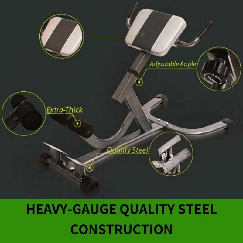 Fitness professionals worldwide recognize the Roman Chair and Back Hyperextension for its exceptional development of the abdominal, oblique, lower back, glute, and hamstring muscles. It is often used for the back hyperextension exercise, which is a highly efficient movement for exercising the lower back, while also working secondary muscles such as glutes, legs, the entire back, shoulders, and neck.