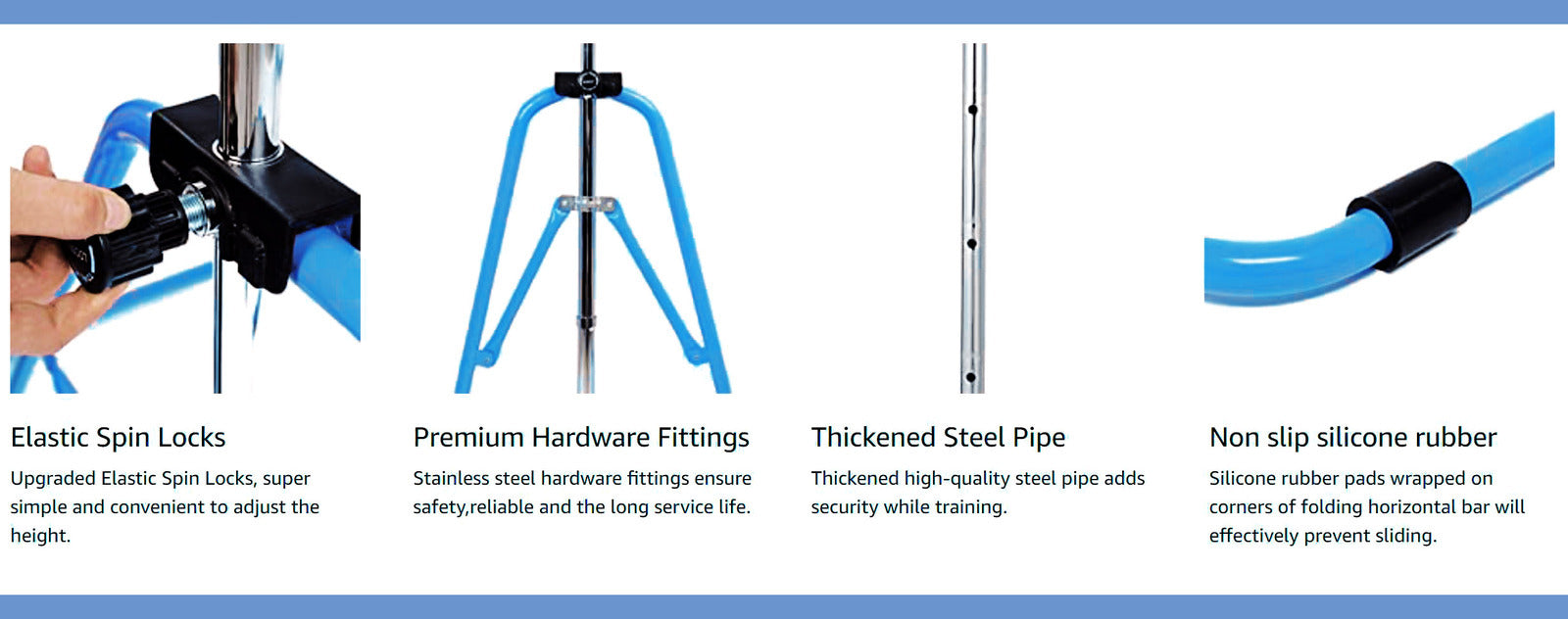 - 4 Adjustable Heights – Grows with your child! With four height levels ranging from 34” (88cm) to 51” (130cm), this bar adapts to different skill levels, making it an investment that lasts for years.