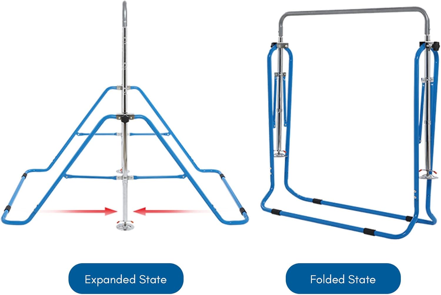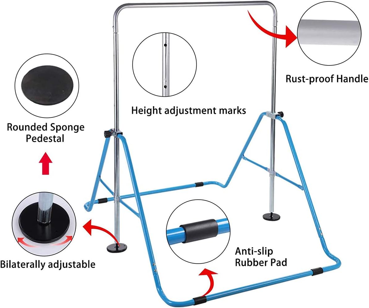 - Foldable & Easy to Assemble – Designed for convenience, this gymnastics bar folds away effortlessly for compact storage. Set it up in minutes and tuck it away when not in use—perfect for small spaces!