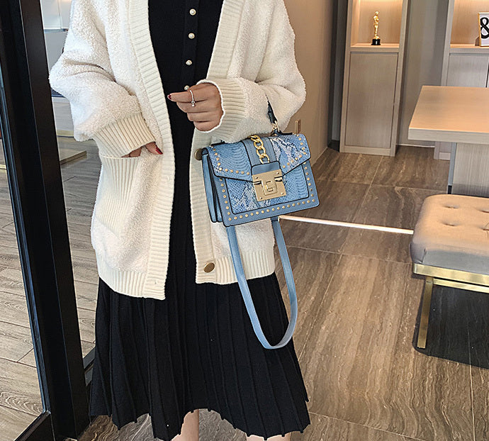 Luxe Designer Handbag Metal Studs Tote Satchel Bag Blue