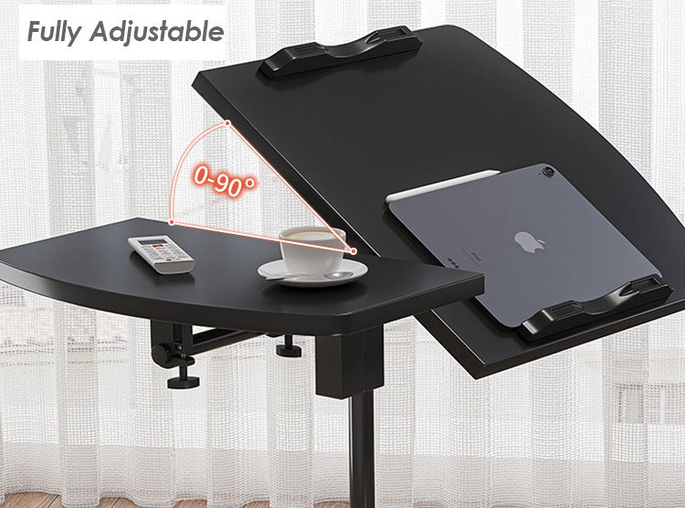 The Adjustable Sofa Bed Side Table Laptop Computer Desk exudes a harmonious blend of steel's contemporary flair and wood's warm rustic essence. Simple yet sophisticated, its unique and elegant design features adjustable angles and heights for tailor-made convenience, while its four wheels enhance its mobility and practicality.