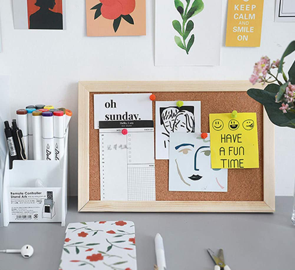 The pinboard bulletin board is the perfect and functional solution to pin your notes and messages. Use any push pins, thumbtacks, or map pins to pin all of your notes, messages, pictures, memos, calendars, menus, reminders, memory photo walls, planners, etc. The notice board is an excellent addition to any space.