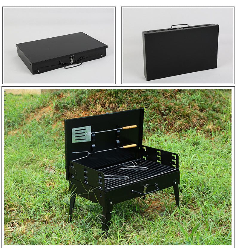 Portable, foldable, compact, and easy to store, this handy barbecue kit is a must for camping, picnics, and get-togethers. Comes with BBQ cooking utensils and folds into a compact case. This BBQ kit is all you need!