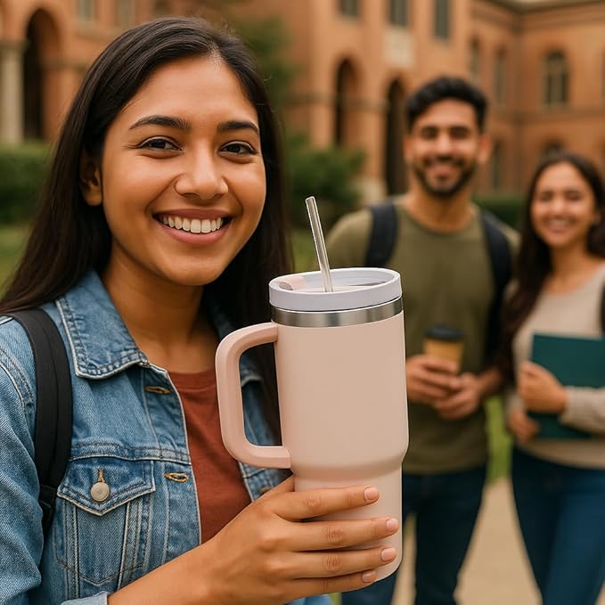 Stainless Steel Insulated Tumbler with Handle Straw Travel Mug (30oz, Rose Quartz)