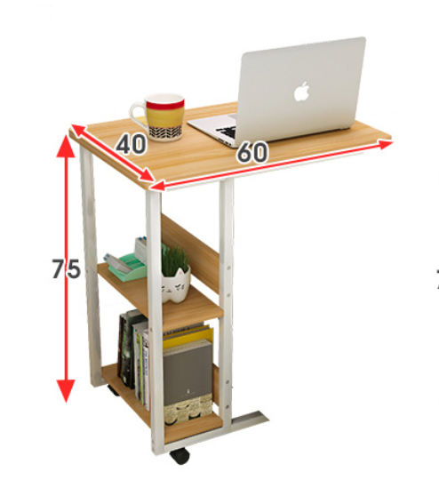 Transform your space with the Sofa Bed Side Table Laptop Computer Desk with Shelves. Designed with clean lines and a sleek modern style, this versatile desk effortlessly blends form and function. The spacious two-tier shelves offer plenty of room for organizing and displaying your essentials, while four easy-roll wheels give you the flexibility to move it wherever you need.