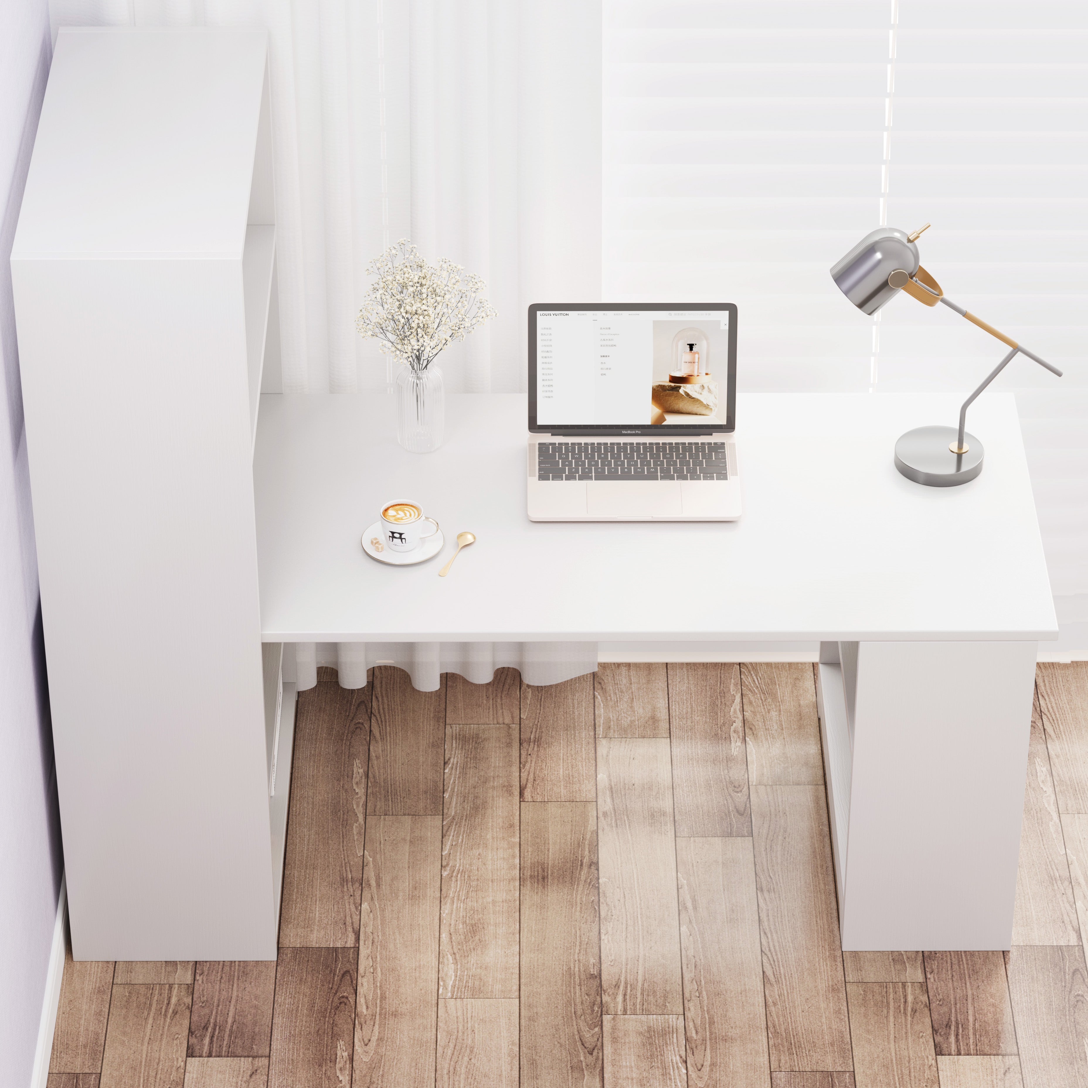 Beautifully designed, it combines the computer desk with a four-shelving unit and a two-shelving unit as a complete integrated system, creating a productive workspace with extra storage and display area for all your office needs and plenty of table space for your computer and accessories. This stylish integrated workstation design is not only innovative and space-saving, but it also adds a touch of style and elegance to your home office. Use your space effectively, in comfort and style.