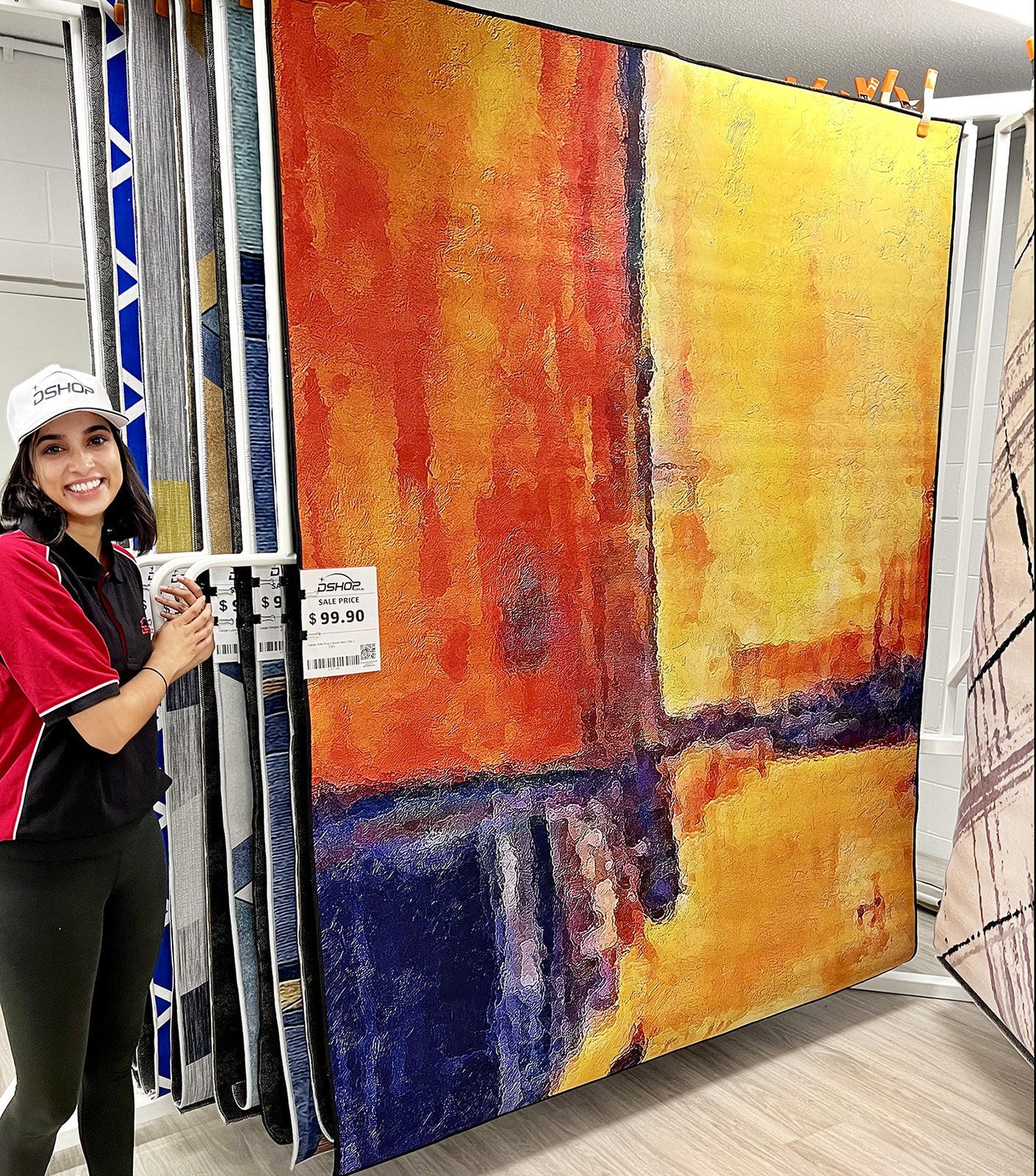 CLEARANCE SALE! This huge, stylish rug is a pleasure to grace any room with its elegant and artistic design. It brings a splash of colour and a dash of luxury, creating an inviting visual appeal that complements contemporary decor. Resembling a stunning abstract canvas, it adds sophistication and a touch of class to your living space. The rug's rich hues and dynamic patterns are not just visually pleasing but also evoke an artistic ambience that can brighten any mood.