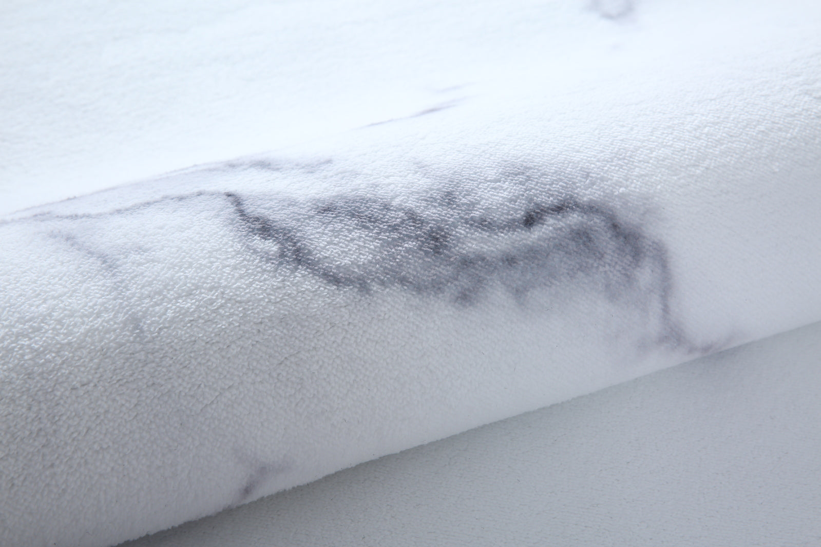 The deluxe rug's captivating white marble pattern, both subtle and striking, provides a natural enhancement to any room, blending effortlessly with all decor styles. With an opulent thickness of approximately 10mm, it emanates an atmosphere of celestial comfort, delivering a sensation akin to walking on clouds. Luxuriate in this unrivaled underfoot comfort and transform your everyday living into an experience of true luxury.